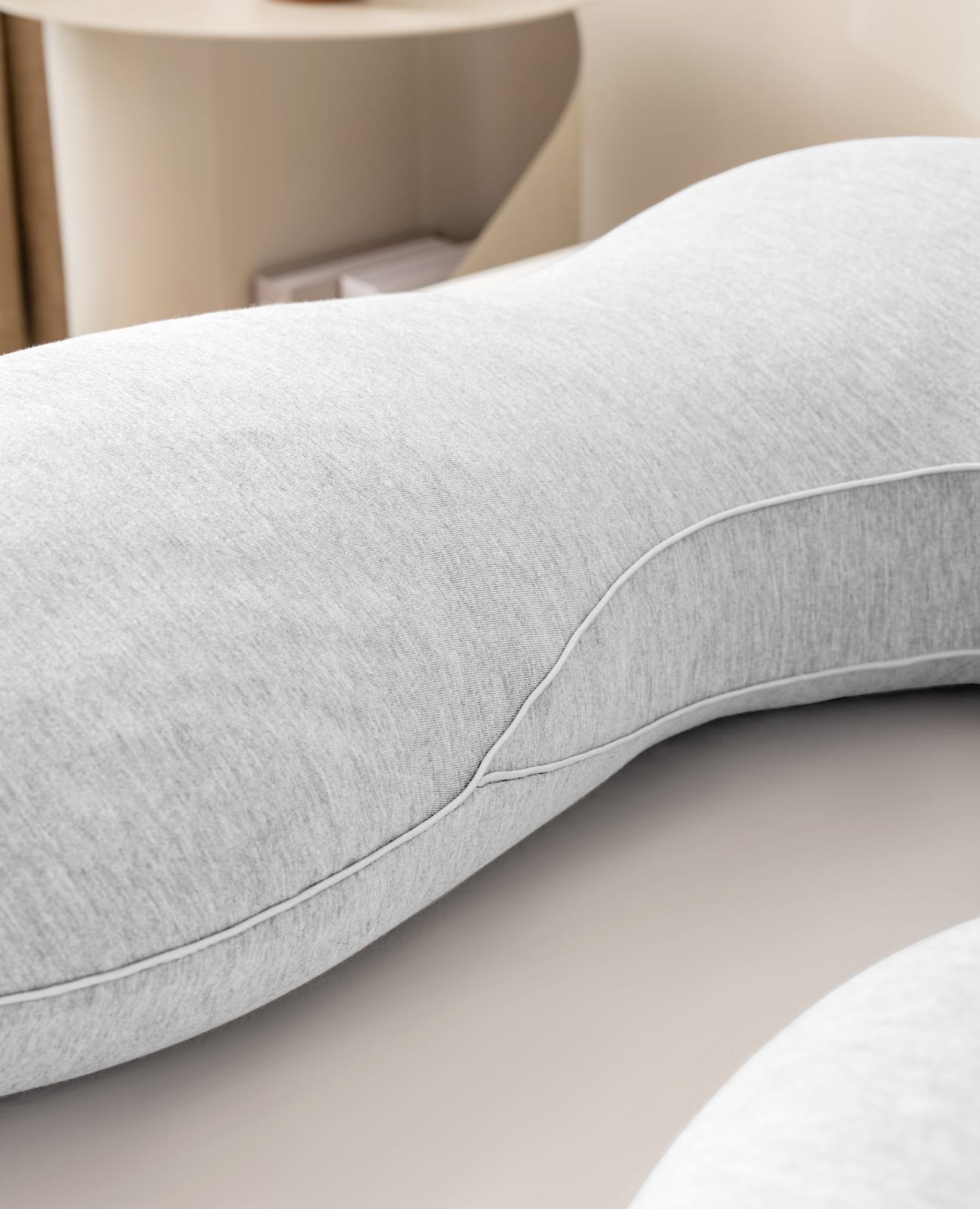 כרית הריון ויסקו בגוון אפור בהיר, מושלמת למי שמחפשת תחושת רוגע ורכות בזמן השינה.