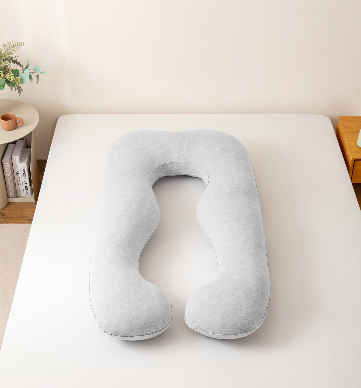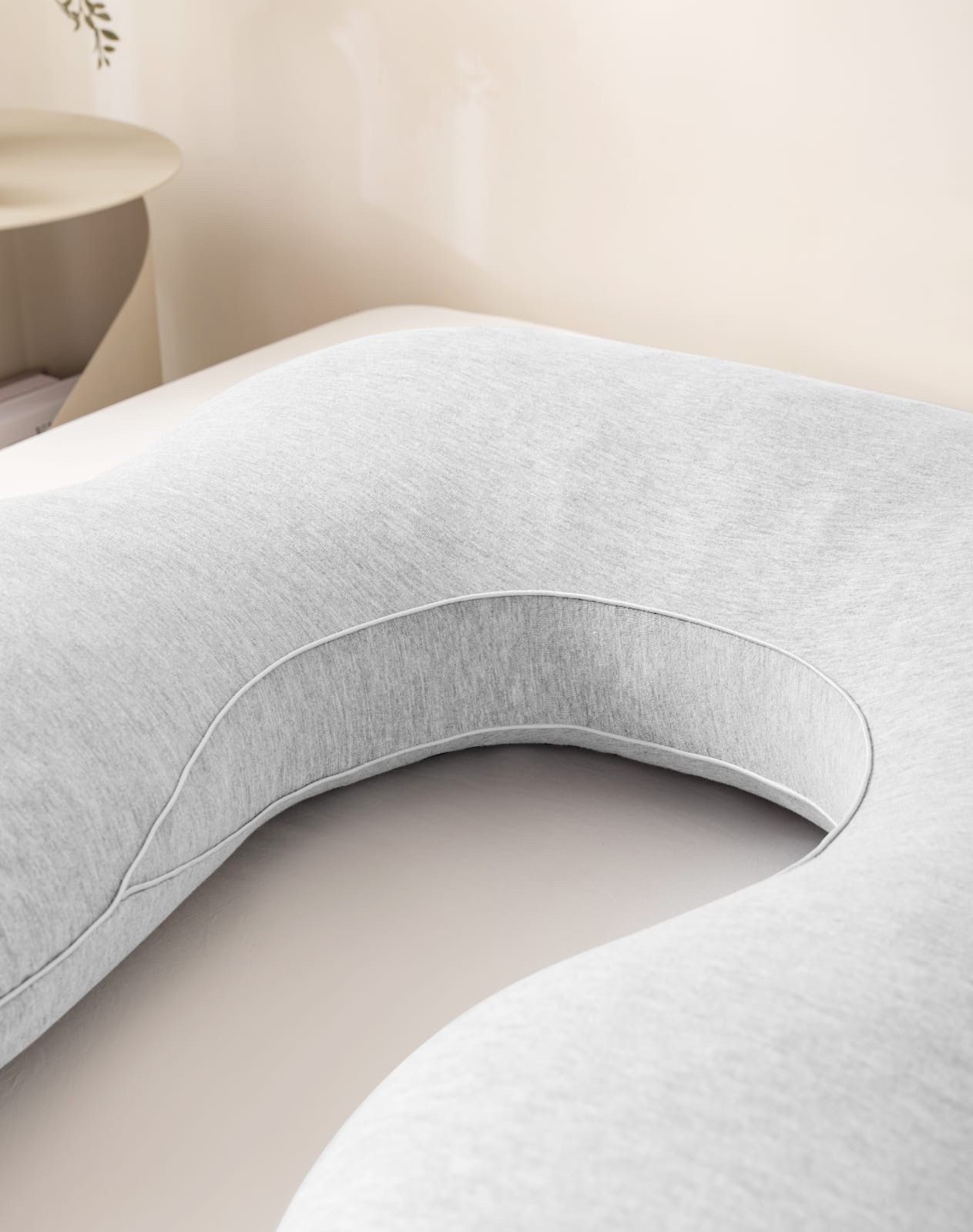 כרית הריון בגוון אפור בהיר ונקי, לנוחות קלה ואוורירית לאורך כל ההיריון.