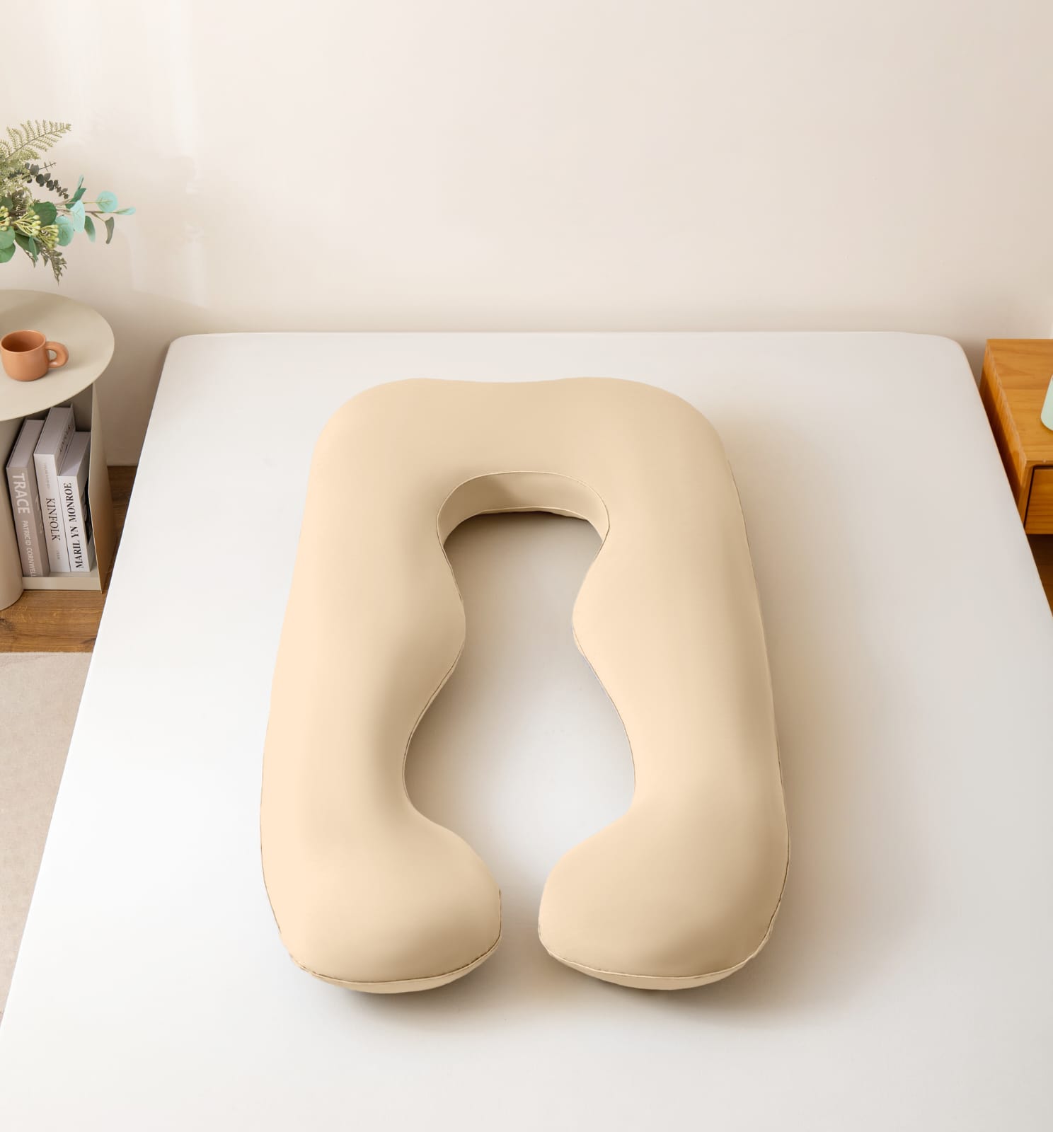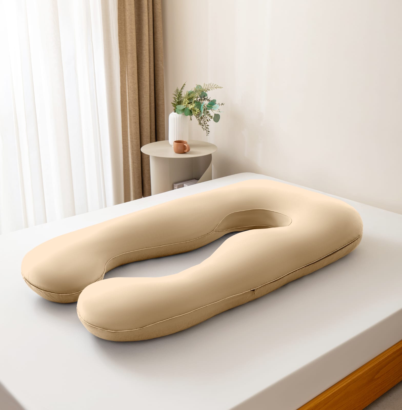 כרית ההריון ויסקו בגוון מוקה עוטפת אותך ברכות חמימה ומעניקה תמיכה מדויקת לכל הגוף.
