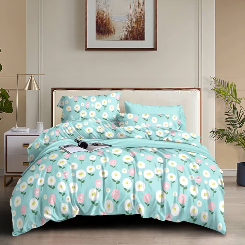 סט מצעים זוגי – 100% סטאן אל קמט דגם: פרחים טורקיז